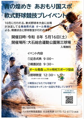青森県代表として出場が決定しているオール青森による親善試合と野球教室が行われます。
