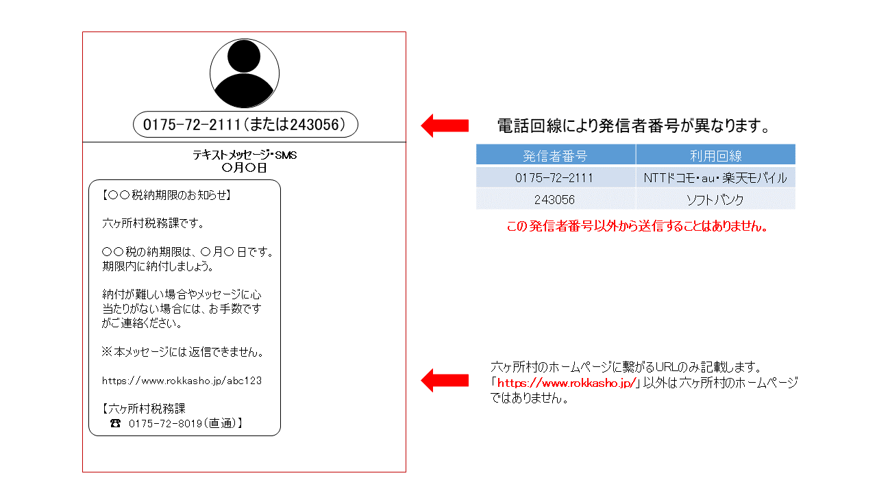これらの番号以外から届くSMSは村が送信したものではないのでご注意ください。